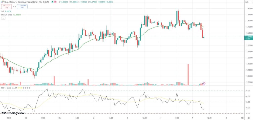 The USD/ZAR currency pair traded not far from recent two-week high of 17.6022 on Monday.