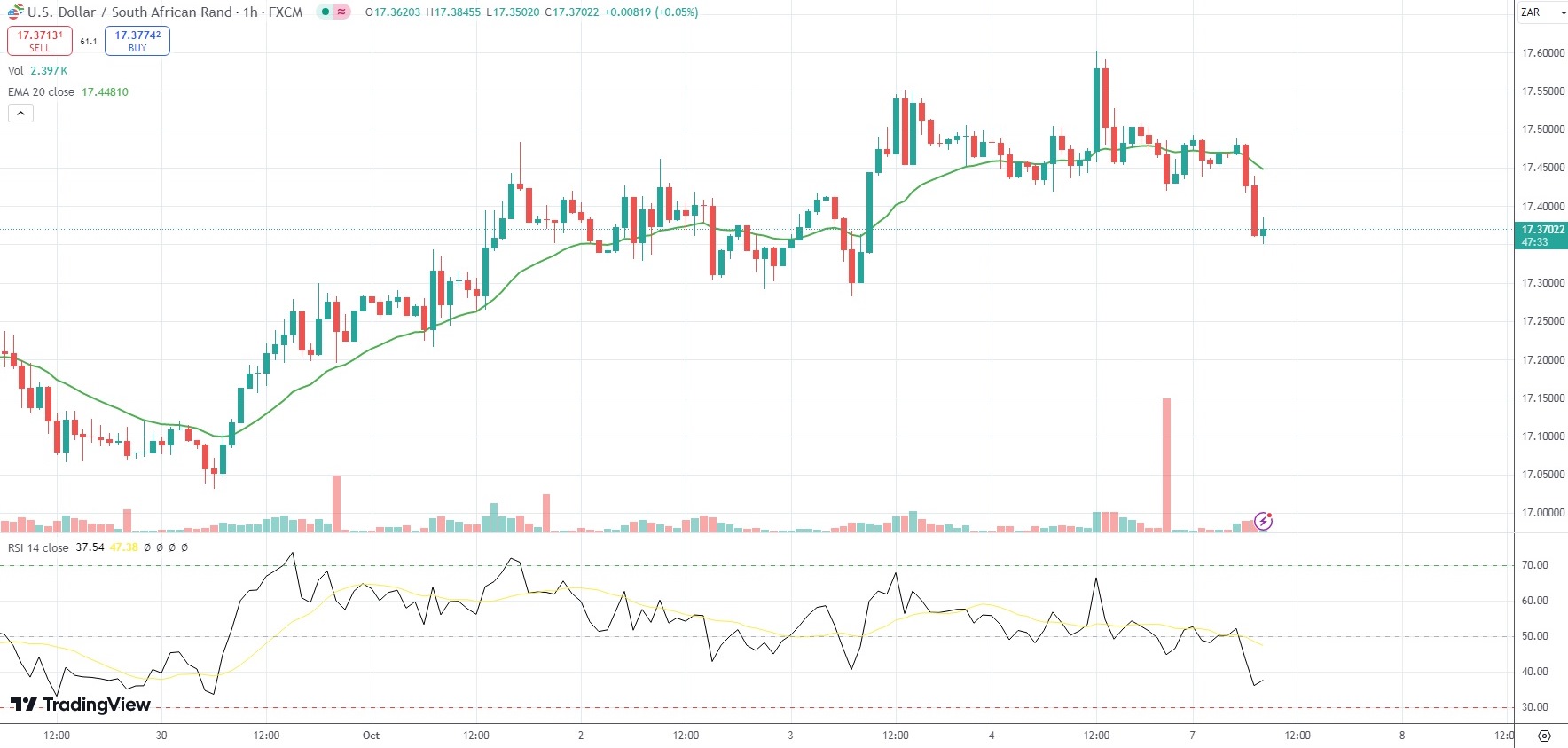 As of 8:11 GMT on Monday the USD/ZAR currency pair was little changed to trade at 17.3715.