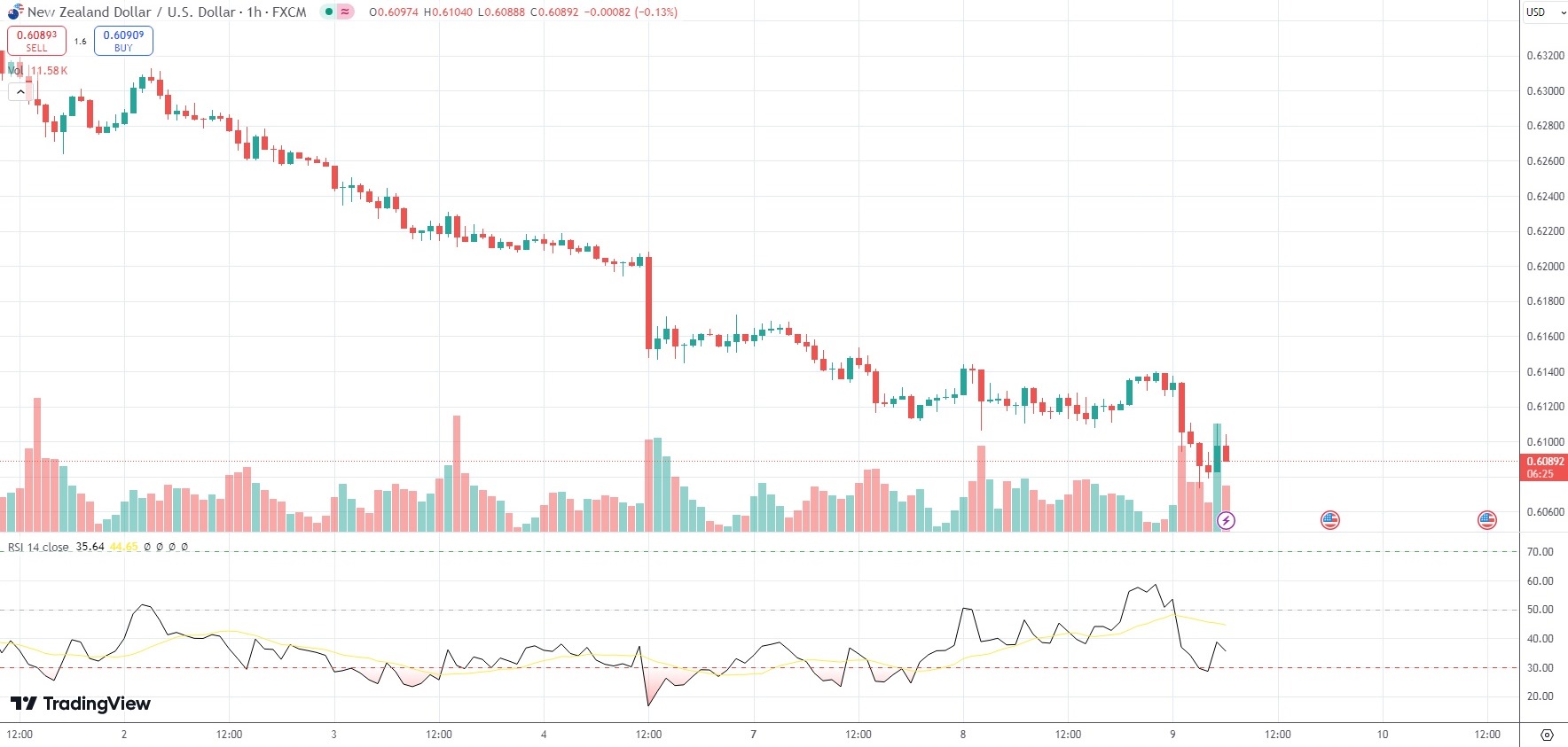 The NZD/USD currency pair was last losing 0.78% on the day to trade at 0.6089.