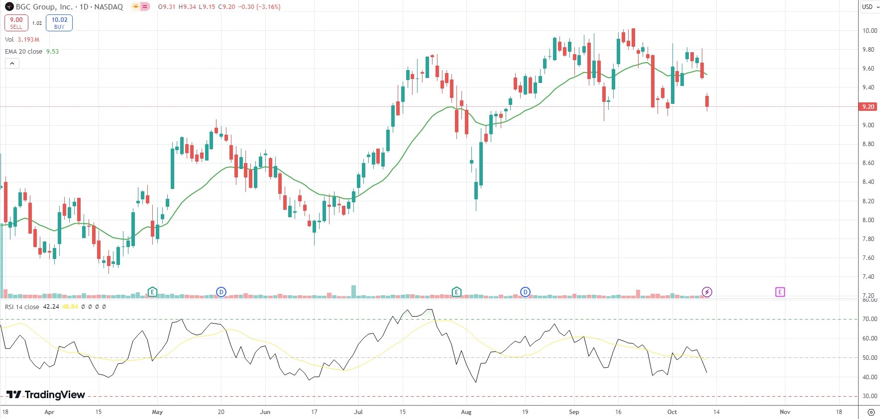 The shares of BGC Group Inc (BGC) closed 3.16% ($0.30) lower at $9.20 on Nasdaq on Thursday, as they extended the loss from the previous market session.