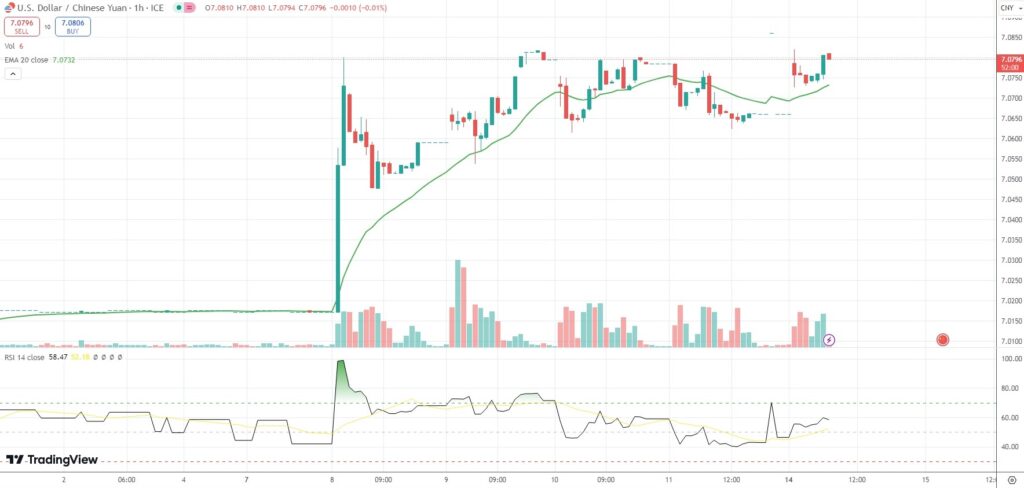The Chinese Yuan was 0.19% weaker on the day against the US Dollar, with the USD/CNY currency pair last trading at 7.0798.