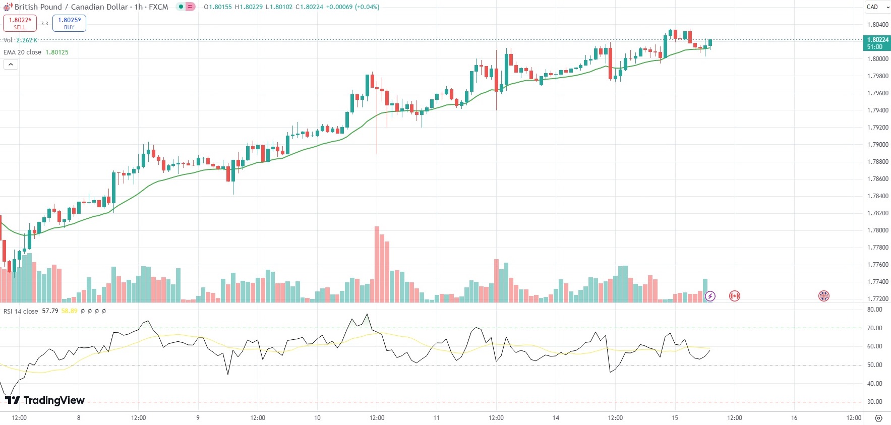 As of 7:08 GMT on Tuesday the GBP/CAD currency pair was inching up 0.07% to trade at 1.8021.