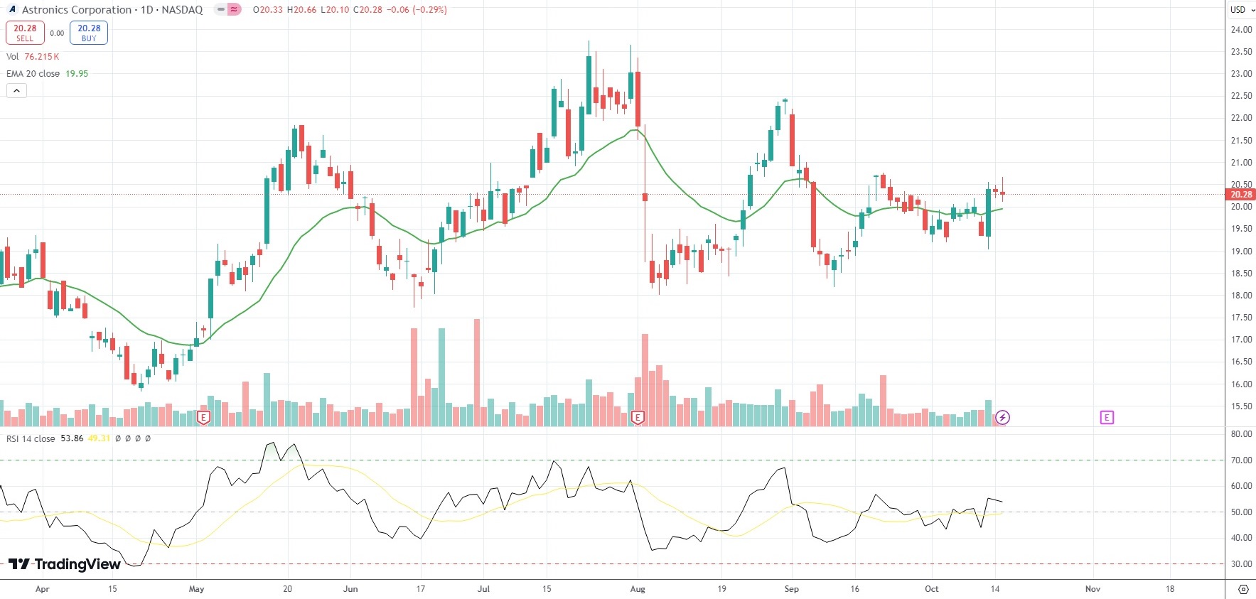 The shares of Astronics Corporation (ATRO) closed 0.29% ($0.06) lower at $20.28 on Nasdaq on Tuesday, as they extended the loss from the previous market session.