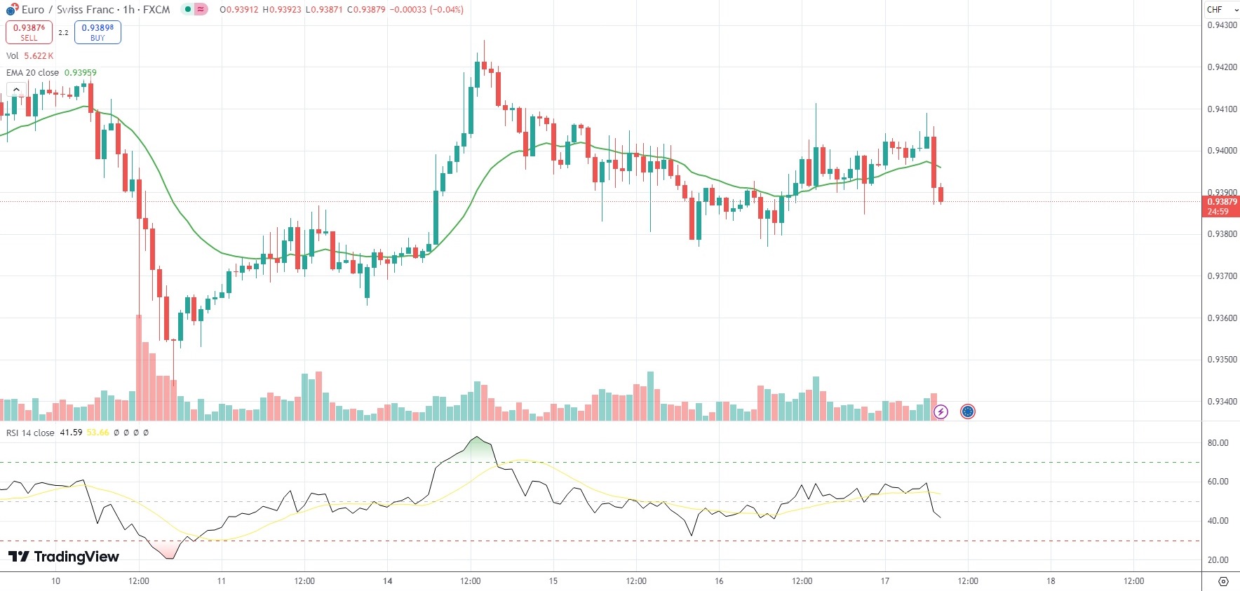 As of 8:34 GMT on Thursday the EUR/CHF currency pair was edging down 0.12% to trade at 0.9387.