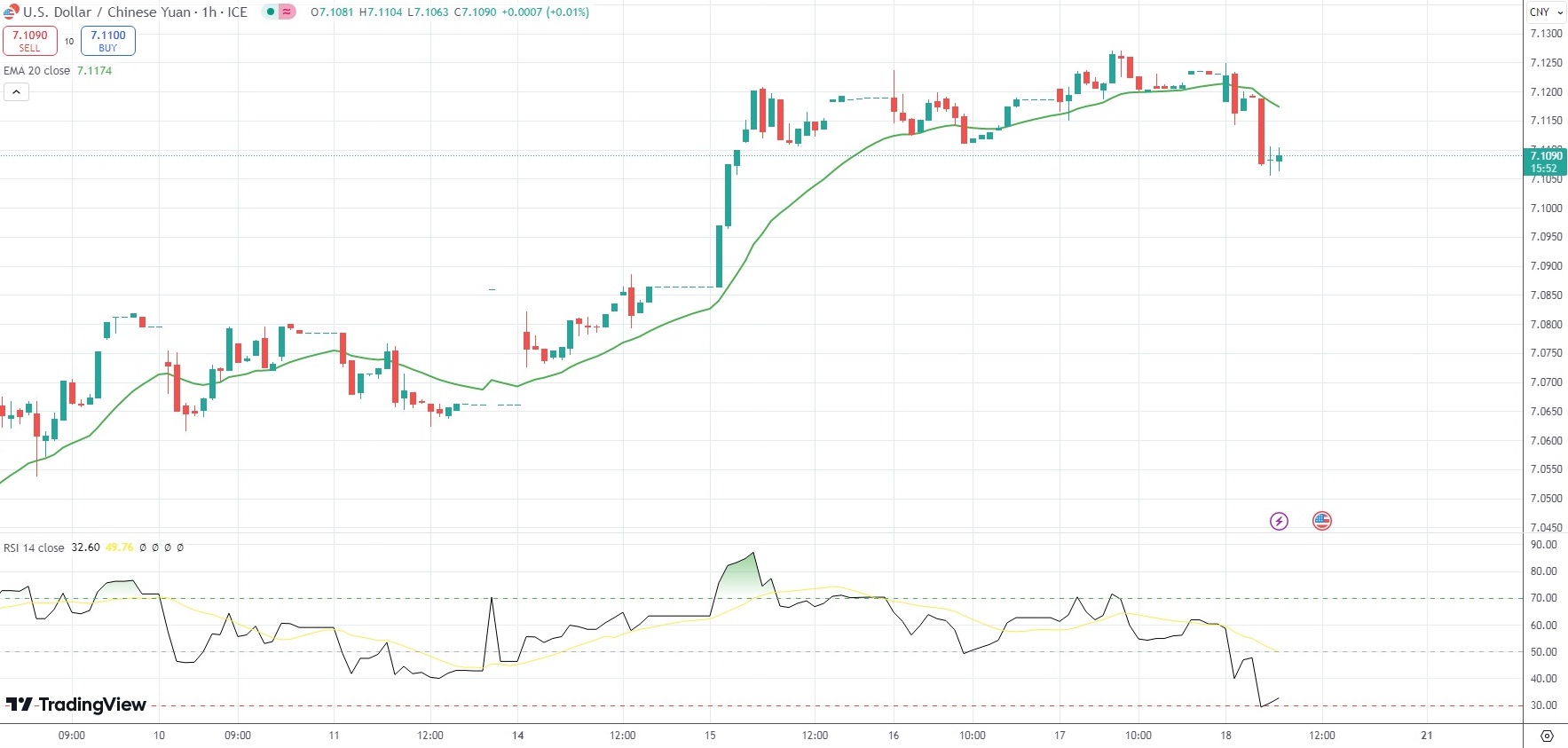 The Chinese Yuan was 0.20% firmer on the day against the US Dollar, with the USD/CNY currency pair last trading at 7.1090.