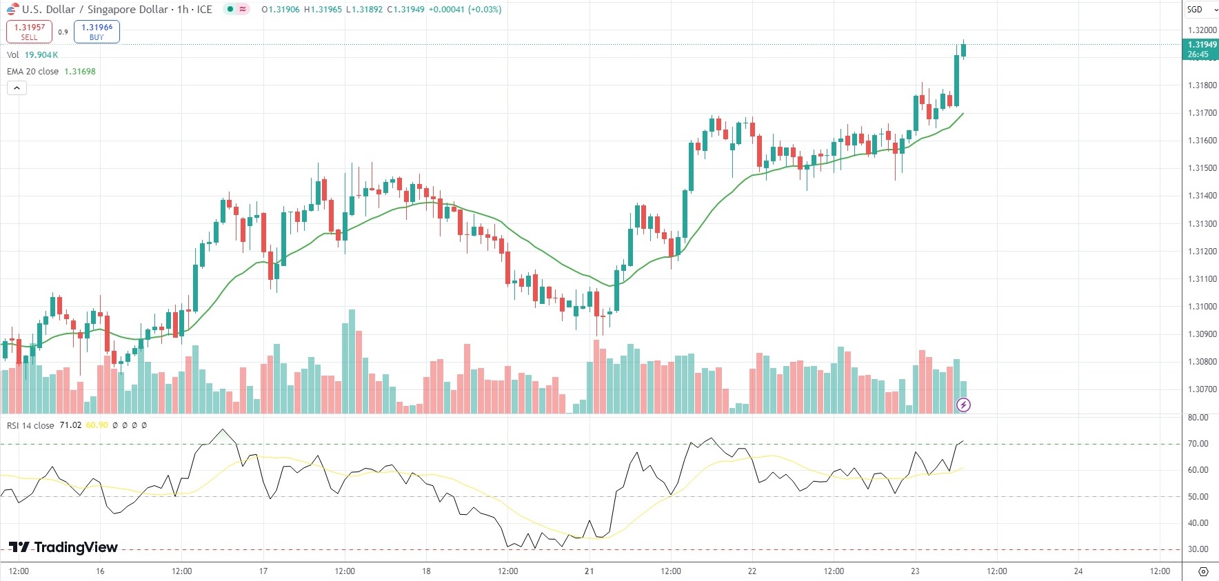 The Singaporean Dollar was 0.34% weaker on the day against its US counterpart, with the USD/SGD currency pair last trading at 1.3196.