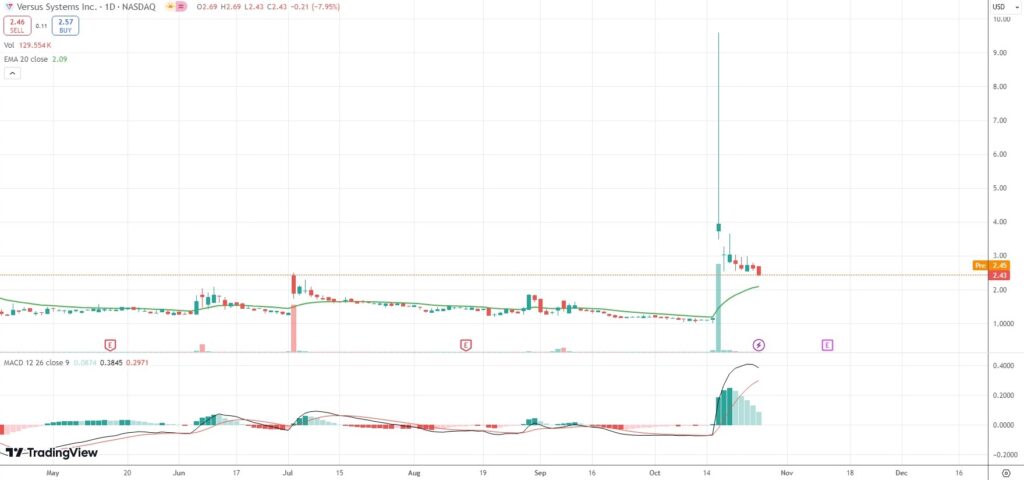 The shares of Versus Systems Inc (VS) closed 7.95% ($0.21) lower at $2.43 on Nasdaq on Friday, as they extended the loss from the previous market session.