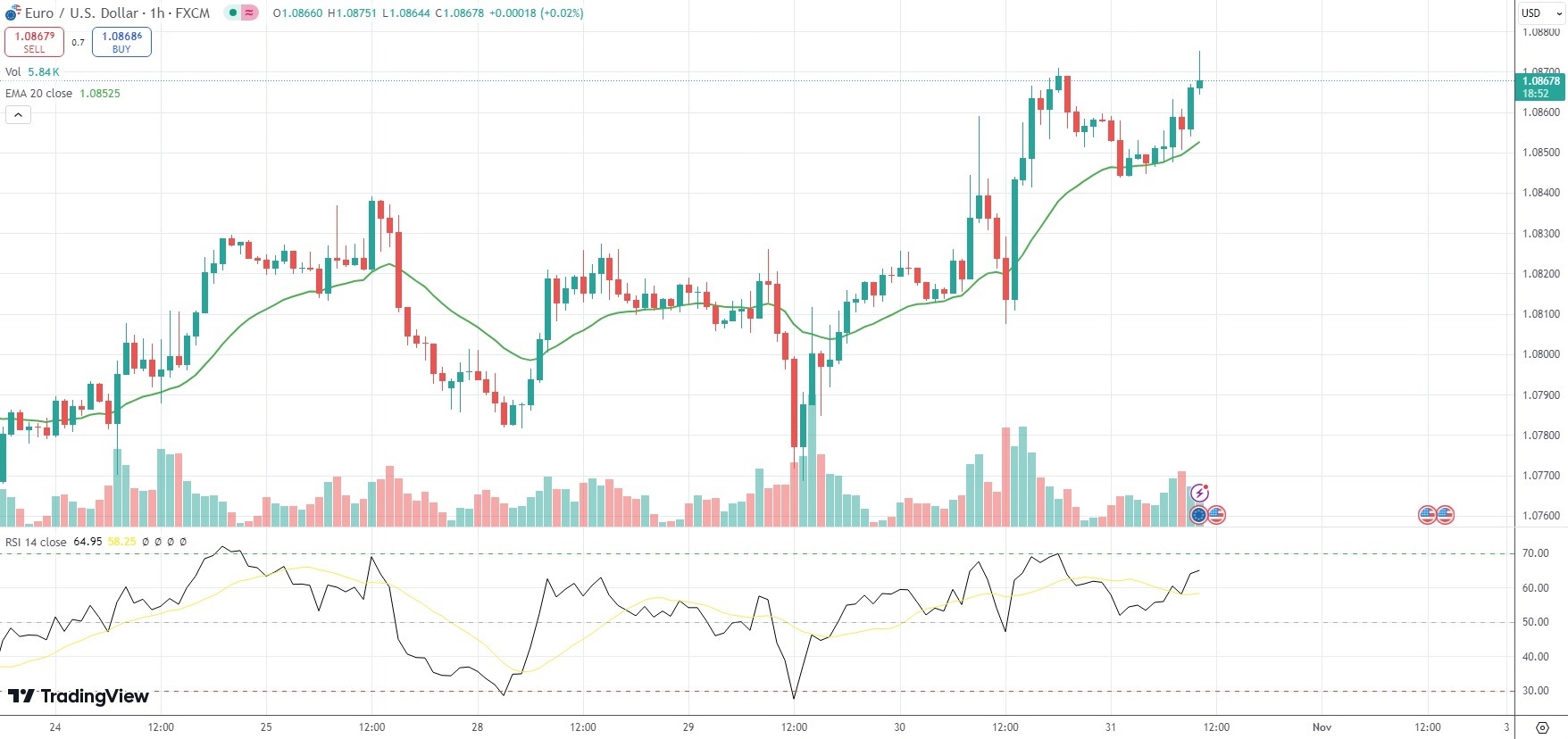 The Euro was 0.12% firmer on the day against the US Dollar, with the EUR/USD currency pair last trading at 1.0868.