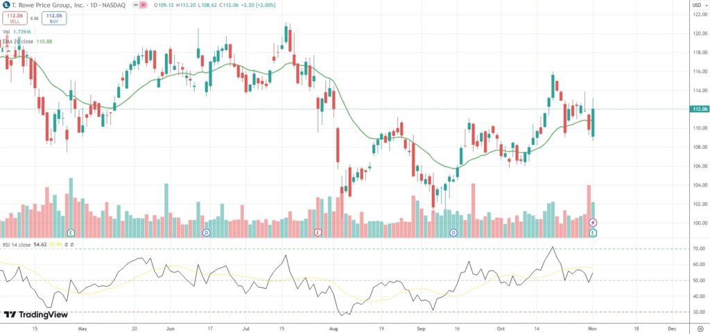 The shares of T. Rowe Price Group Inc (TROW) closed 2.00% ($2.20) higher at $112.06 on Nasdaq on Friday, as they snapped a three-day streak of losses.
