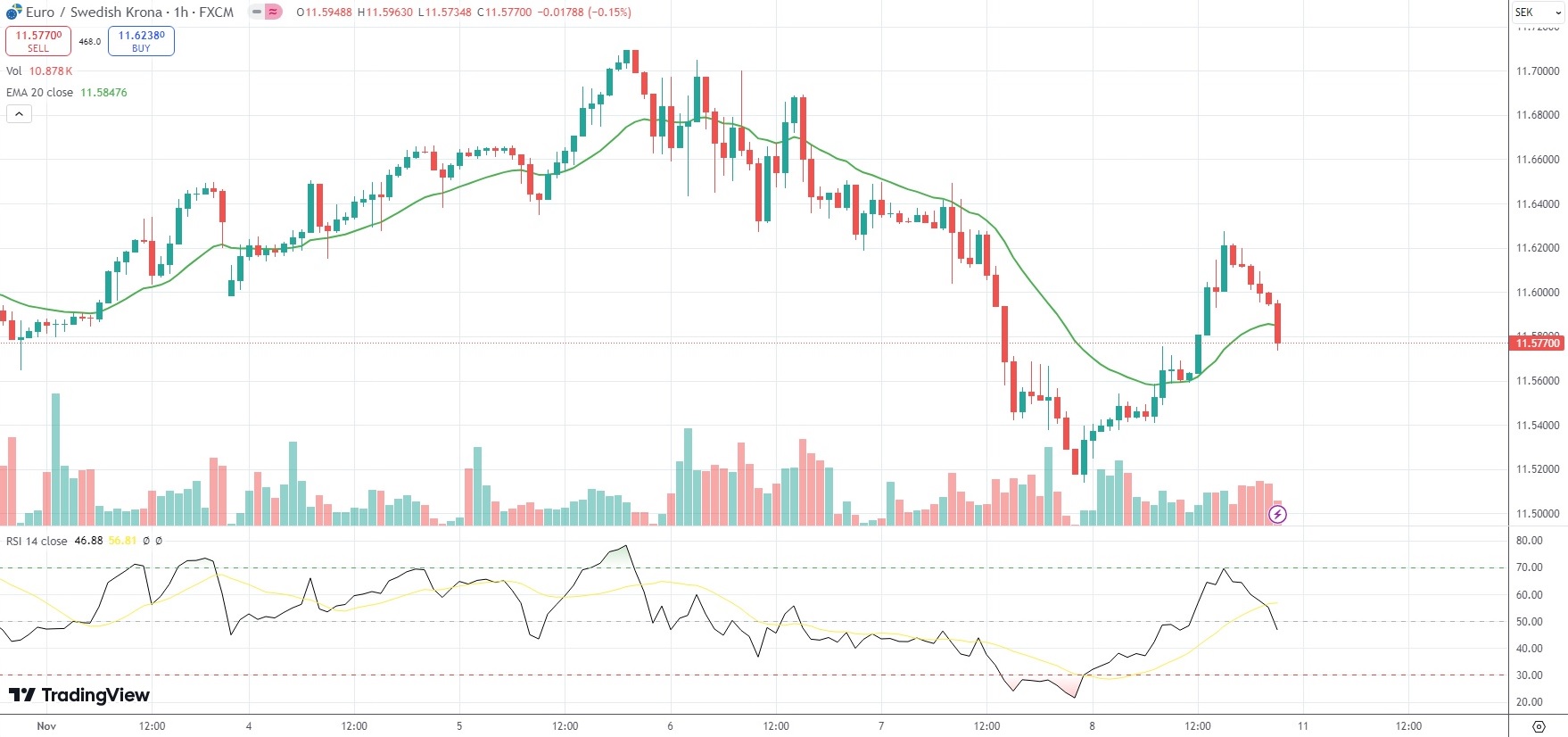 The EUR/SEK currency pair settled 0.41% higher at 11.5770 on Friday. For the week, the exotic currency pair went down 0.47%.