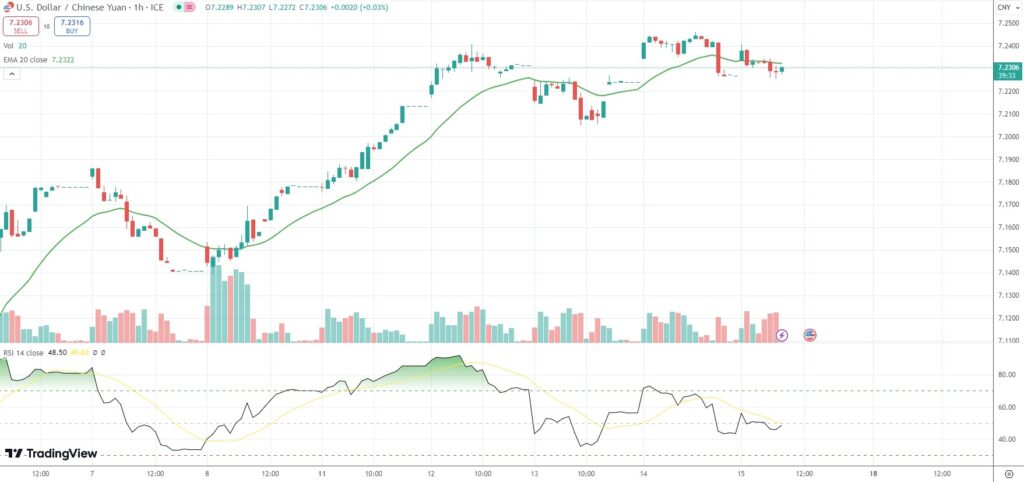 The Chinese Yuan was little changed on the day against the US Dollar, with the USD/CNY currency pair last trading at 7.2307.