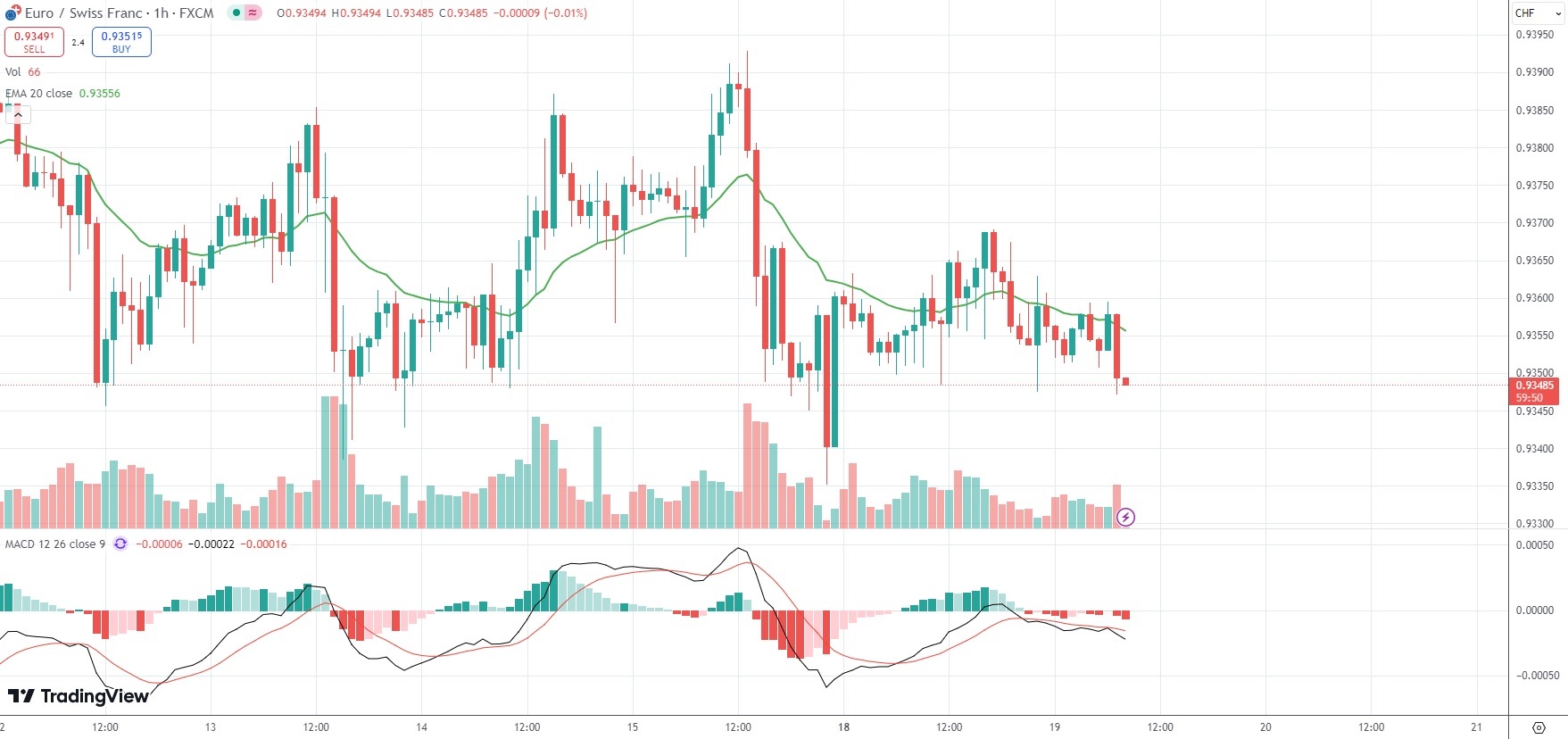 The Swiss Franc was little changed on the day against the Euro, with the EUR/CHF currency pair last trading at 0.9350.
