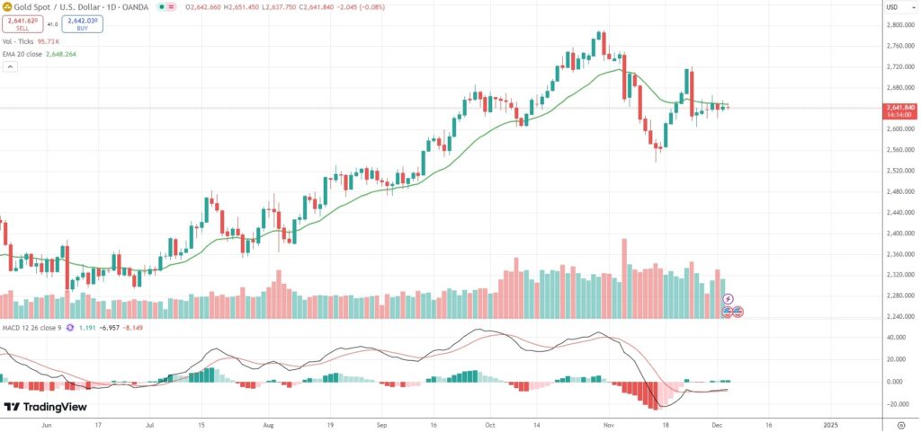 Spot Gold was mostly steady on Wednesday, while holding in proximity to the $2,650 mark, as investors awaited a speech by Fed Chair Jerome Powell later in the day, which may provide more clues regarding the central bank’s policy path next year.