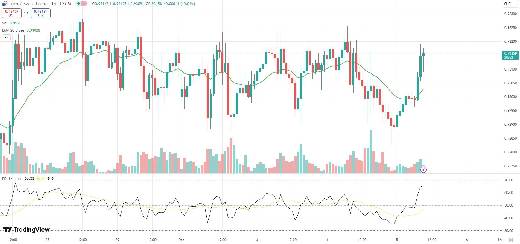 The Swiss Franc was 0.26% weaker on the day against the Euro, with the EUR/CHF currency pair last trading at 0.9316 ahead of Euro Area retail sales data for October.