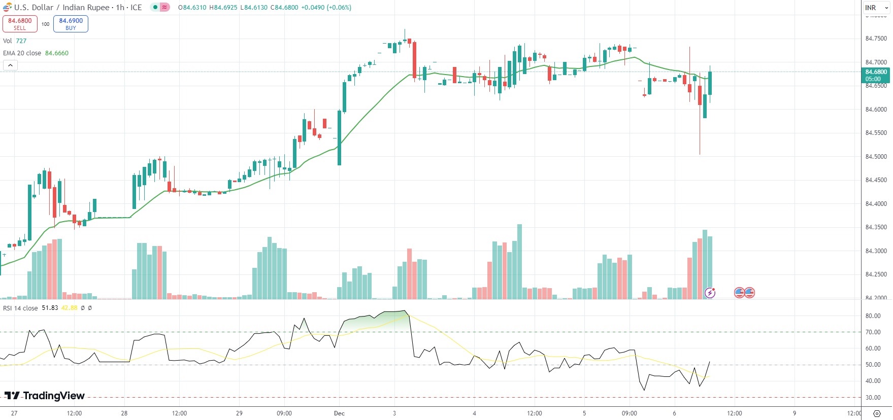 The Indian Rupee advanced to 84.5040 per US Dollar immediately after the policy decision, but later erased gains to last trade at 84.6825 per US Dollar.