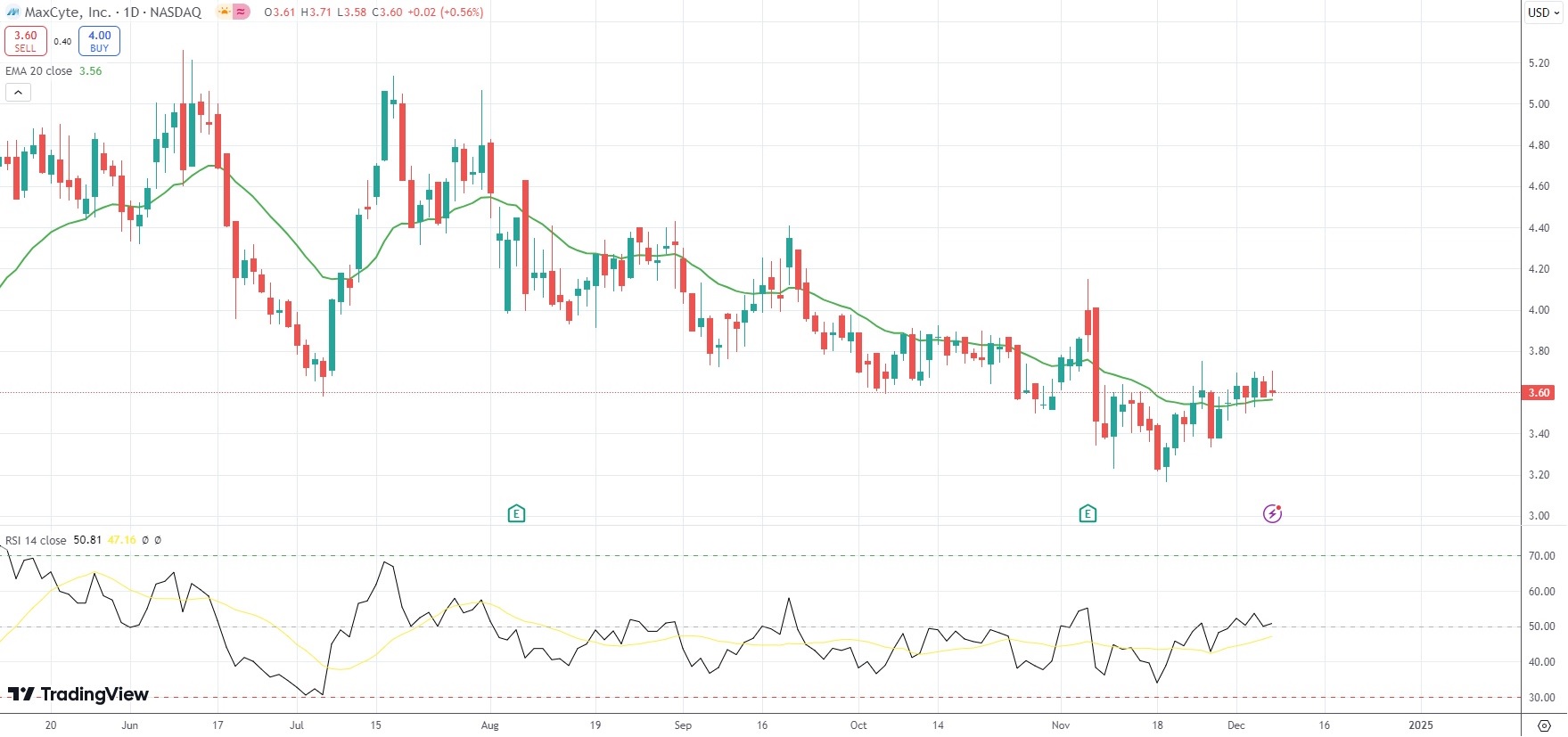 The shares of MaxCyte Inc (MXCT) closed 0.56% ($0.02) higher at $3.60 on Nasdaq on Friday, as they reversed a loss from the previous market session.