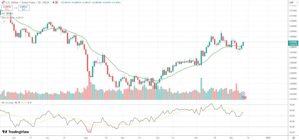 The USD/CHF currency pair extended the gain from the prior trading day on Wednesday ahead of the essential US CPI inflation data that could provide further clues over the Federal Reserve’s monetary easing path and ahead of the outcome of the Swiss National Bank’s policy meeting.
