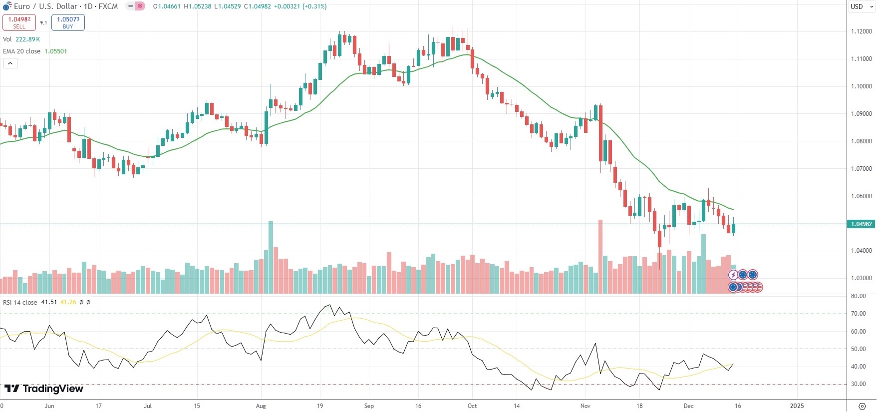 The EUR/USD currency pair settled 0.31% higher at 1.0498 on Friday. For the week, the major currency pair went down 0.65%.