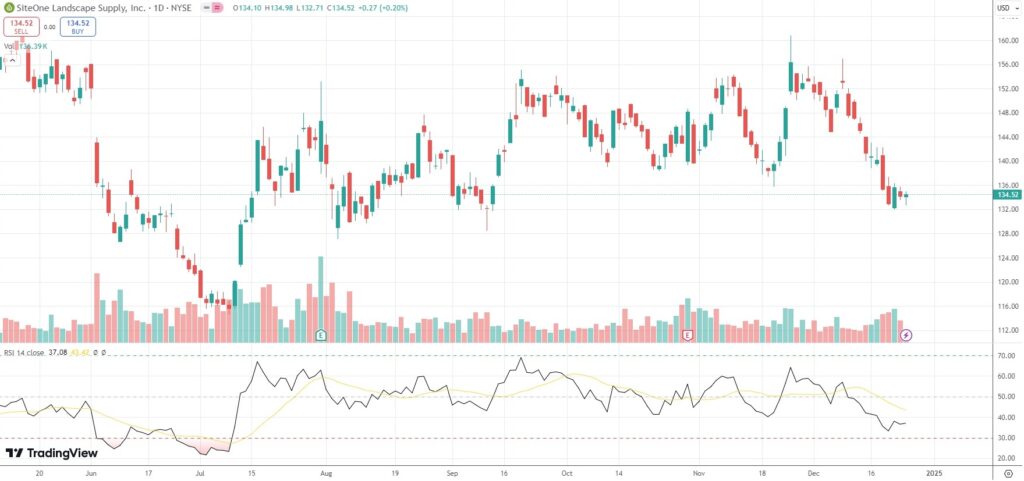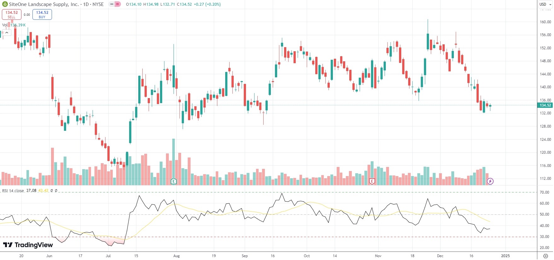 The shares of SiteOne Landscape Supply Inc (SITE) closed 0.20% ($0.27) higher at $134.52 in New York on Tuesday, as they reversed a loss from the previous market session.