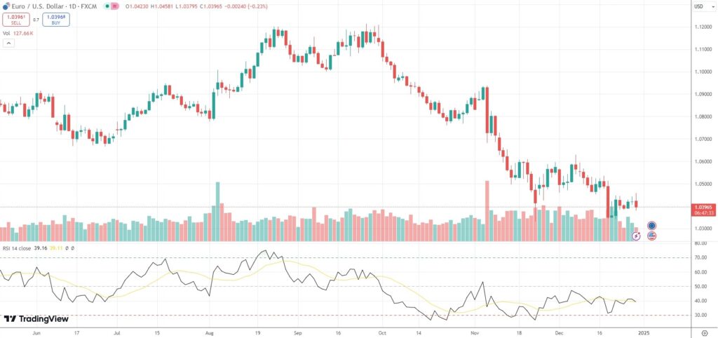The Euro was 0.21% weaker on the day against the US Dollar, with the EUR/USD currency pair last trading at 1.0398.