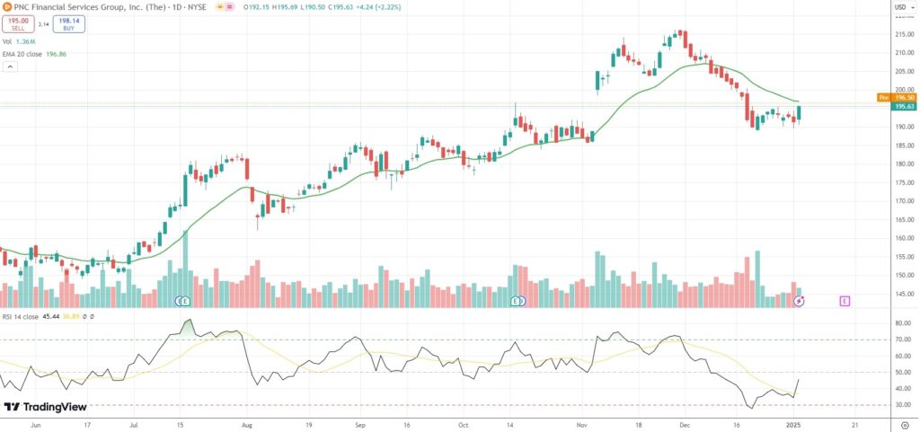 The shares of The PNC Financial Services Group Inc (PNC) went up 24.54% in 2024, compared with a 23.30% gain for the benchmark index, S&P 500 (SPX).