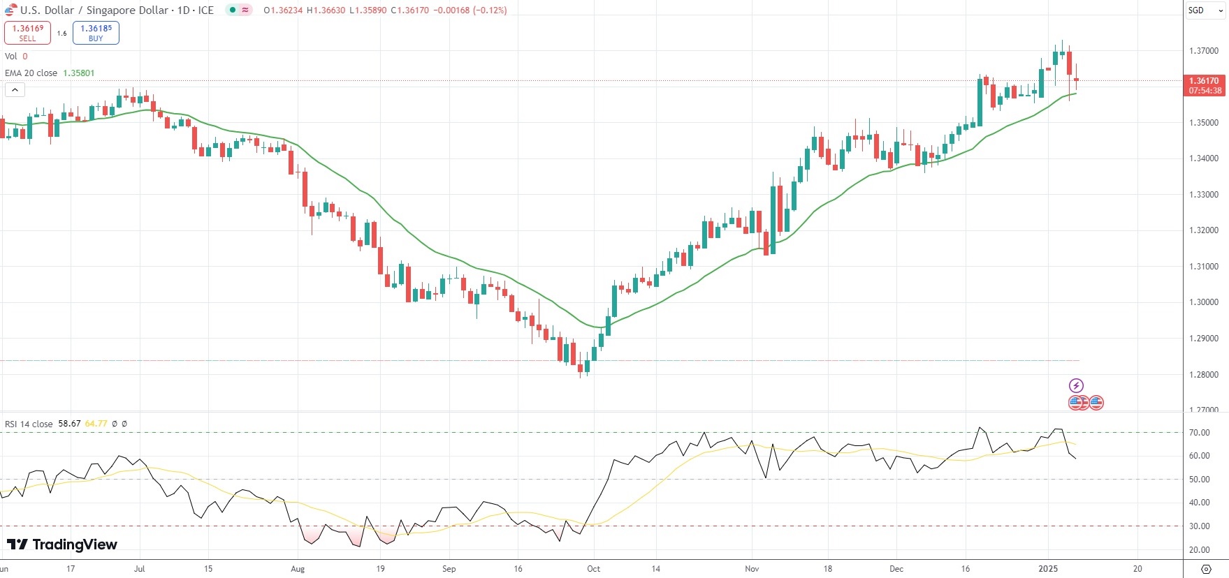 The Singapore Dollar was little changed on the day against its US counterpart, with the USD/SGD currency pair last trading at 1.3616.