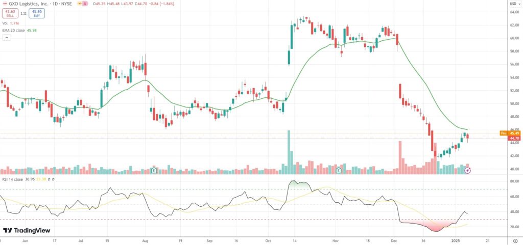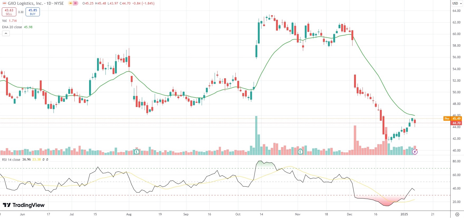 The shares of GXO Logistics Inc (GXO) closed 1.84% ($0.84) lower at $44.70 in New York on Wednesday.