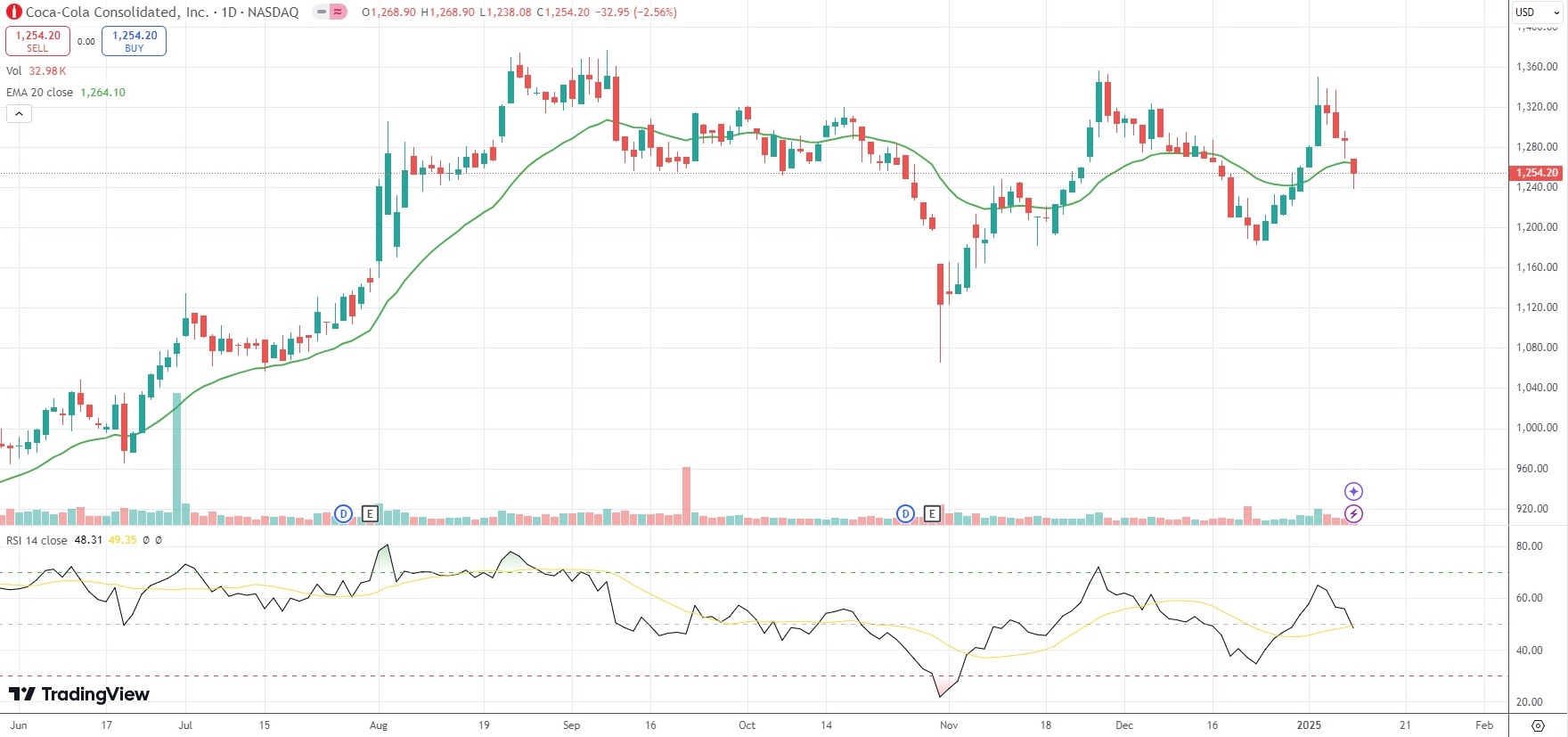 The shares of Coca-Cola Consolidated Inc (COKE) closed 2.56% ($32.95) lower at $1,254.20 on Nasdaq on Friday. It has been the steepest single-session loss since December 23rd 2024.