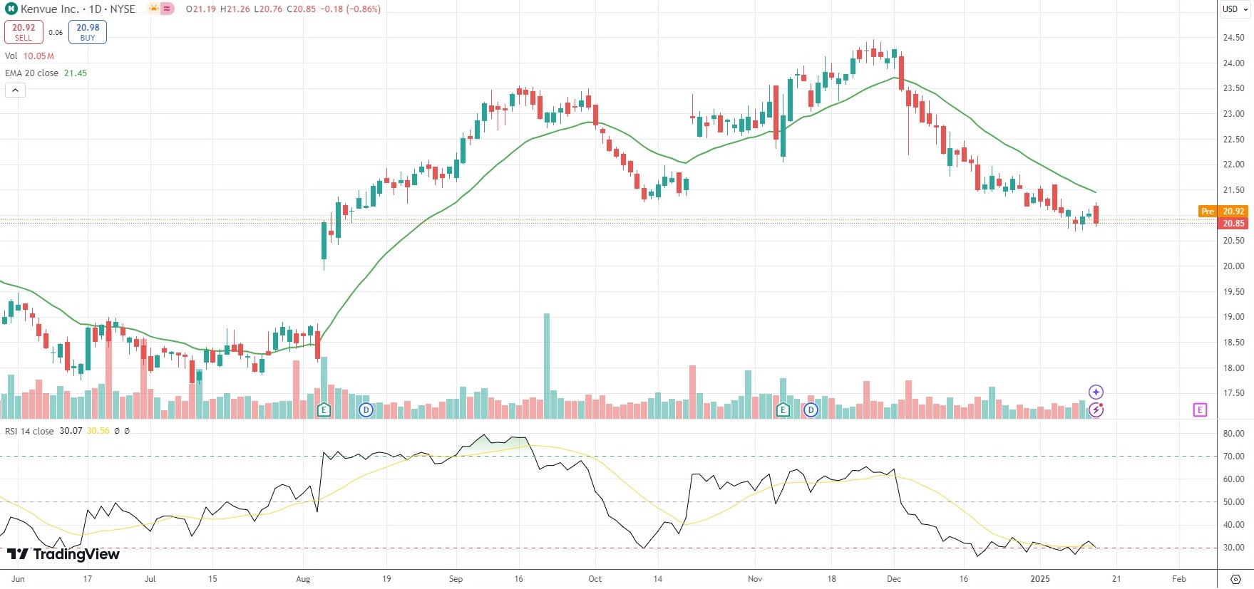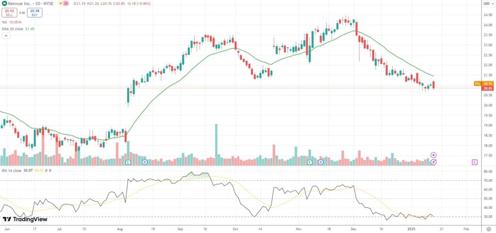 The shares of Kenvue Inc (KVUE) went down 0.84% in 2024, compared with a 23.30% gain for the benchmark index, S&P 500 (SPX).