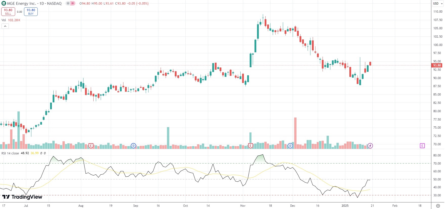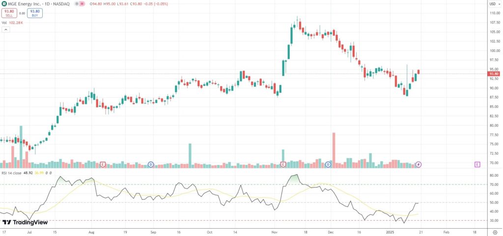 The shares of MGE Energy Inc (MGEE) went up 29.94% in 2024, compared with a 28.64% gain for the benchmark index, Nasdaq Composite (IXIC).