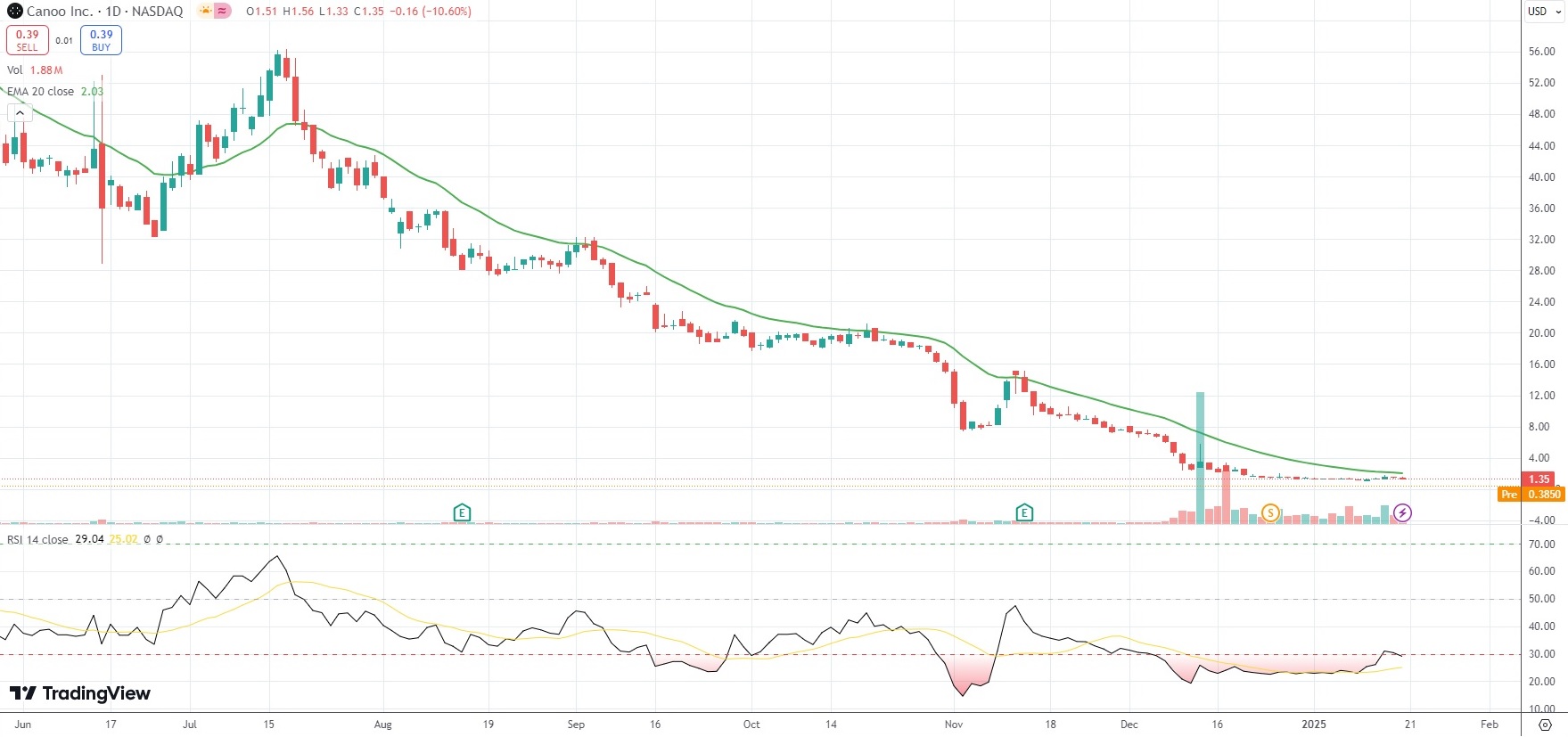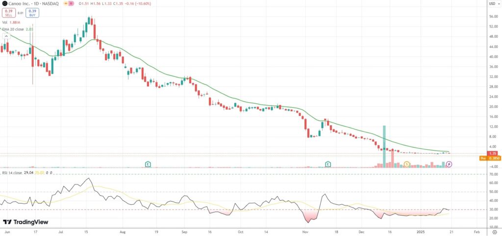 The shares of Canoo Inc (GOEV) went down 98.81% in 2024, compared with a 28.64% gain for the benchmark index, Nasdaq Composite (IXIC).
