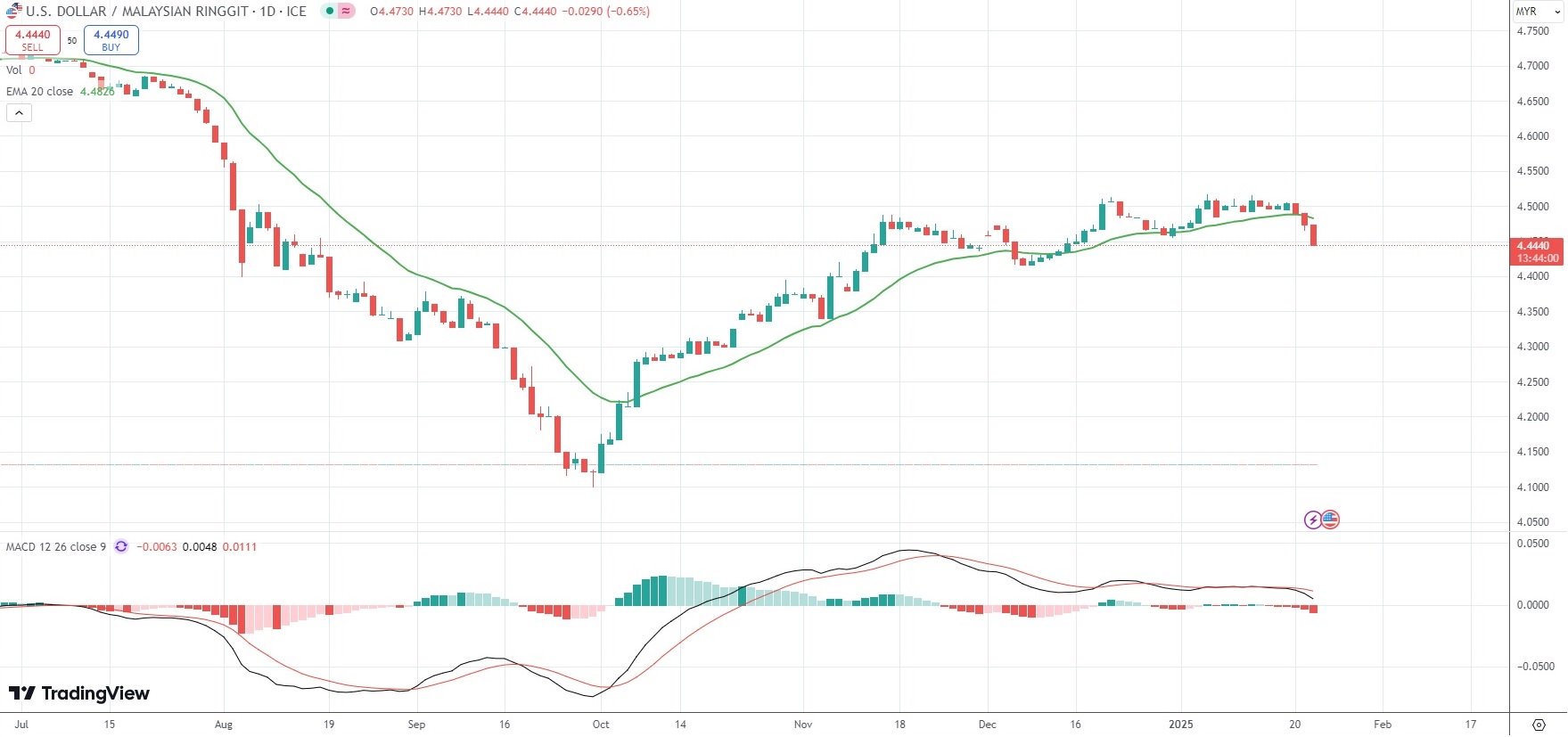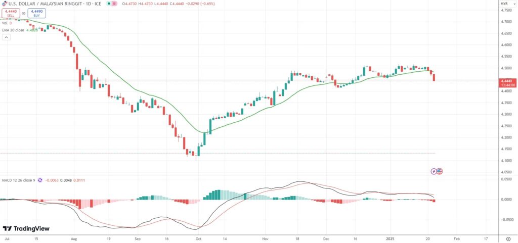 The USD/MYR currency pair was last losing 0.65% on the day to trade at 4.4440. It has also been its lowest level since December 13th.