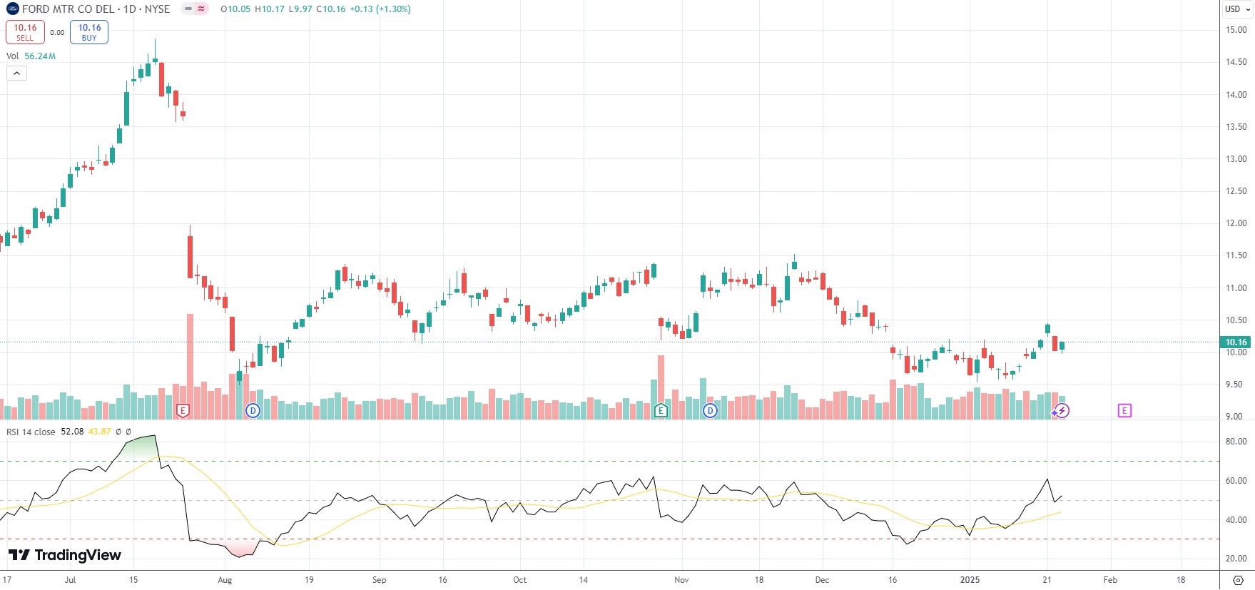 The shares of Ford Motor Co (F) went down 18.78% in 2024, compared with a 23.30% gain for the benchmark index, S&P 500 (SPX).