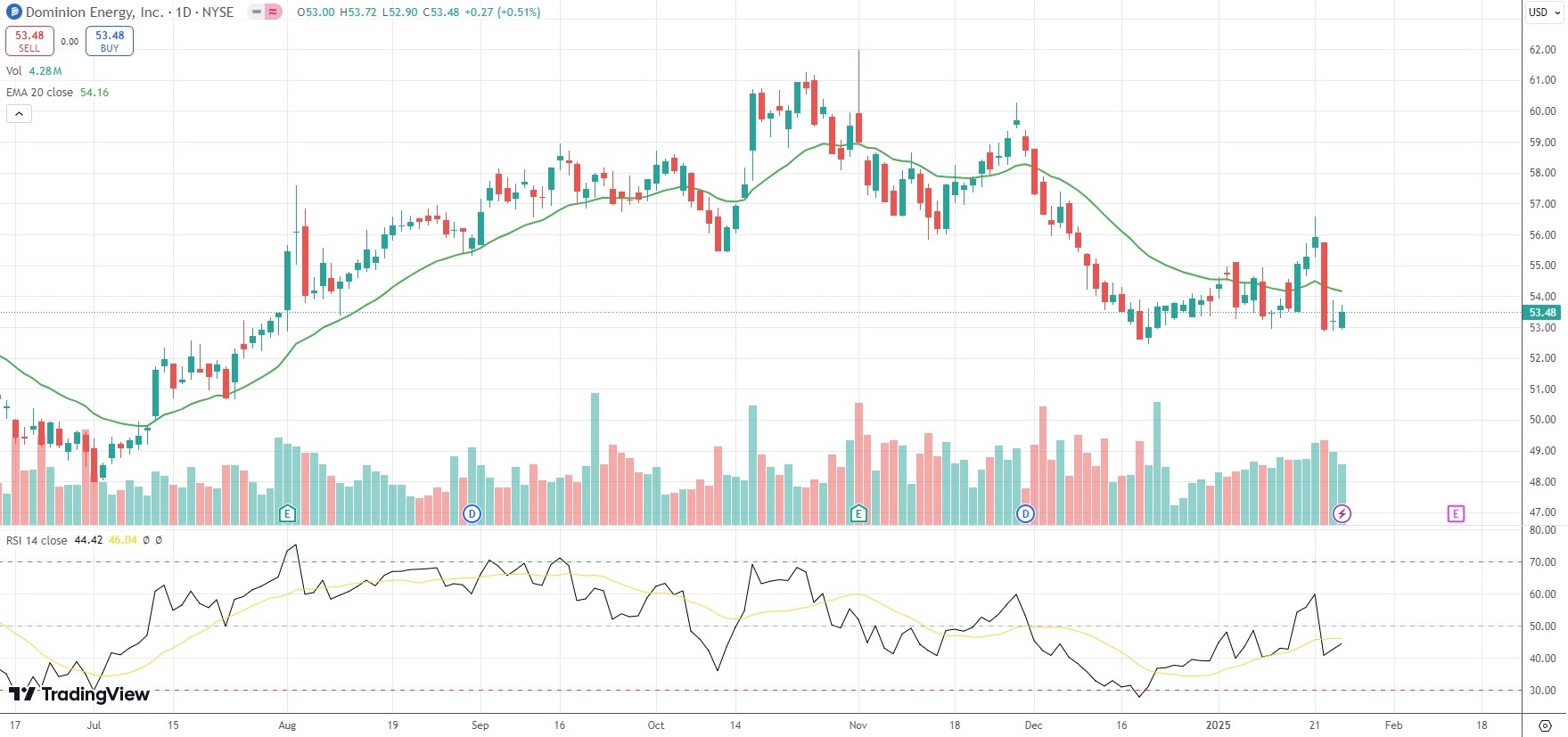 The shares of Dominion Energy Inc (D) closed 0.51% ($0.27) higher at $53.48 in New York on Friday.