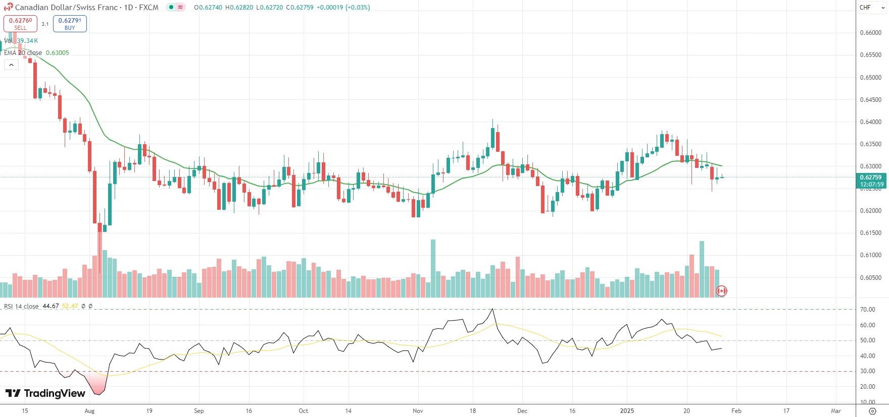 The CAD/CHF currency pair was last inching up 0.03% on the day to trade at 0.6276.