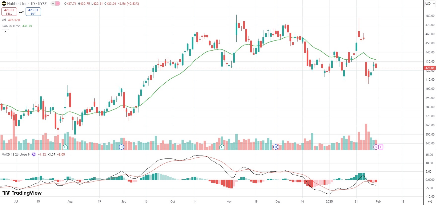 The shares of Hubbell Inc (HUBB) went up 27.35% in 2024, compared with a 23.30% gain for the benchmark index, S&P 500 (SPX).