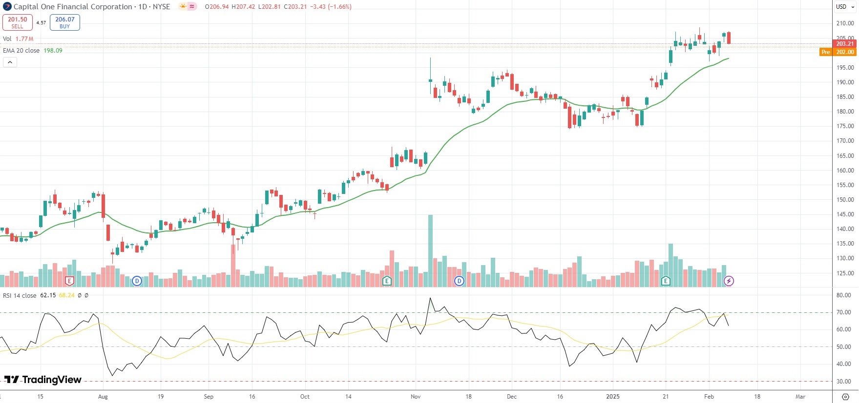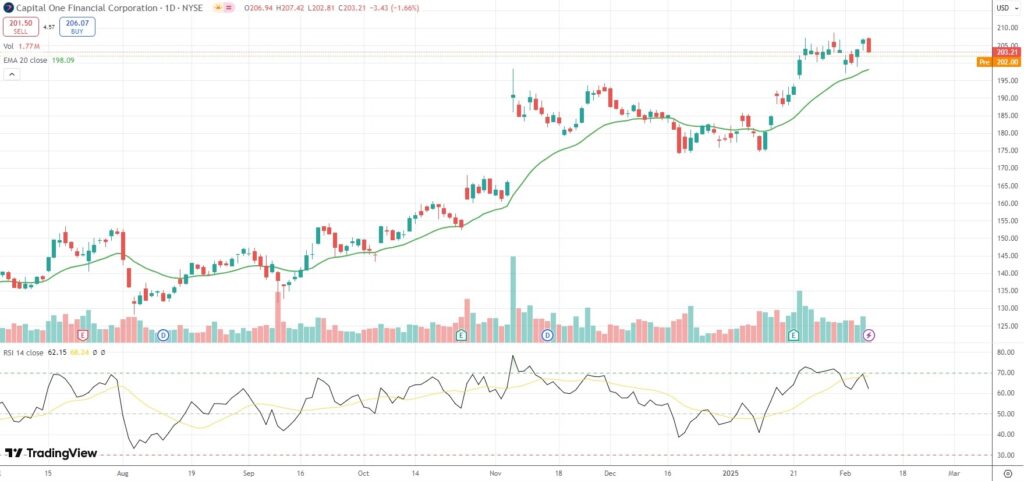 The shares of Capital One Financial Corp (COF) closed 1.66% ($3.43) lower at $203.21 in New York on Friday.