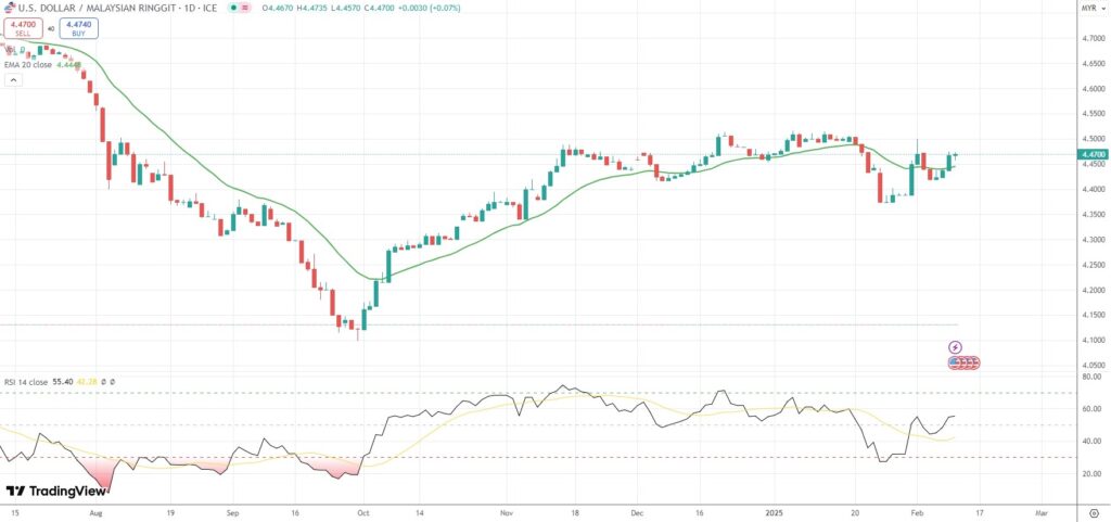 The USD/MYR currency pair was last inching up 0.07% on the day to trade at 4.4700.