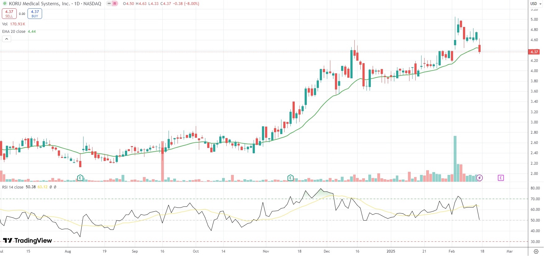 The shares of KORU Medical Systems Inc (KRMD) closed 8.00% ($0.38) lower at $4.37 on Nasdaq on Friday.
