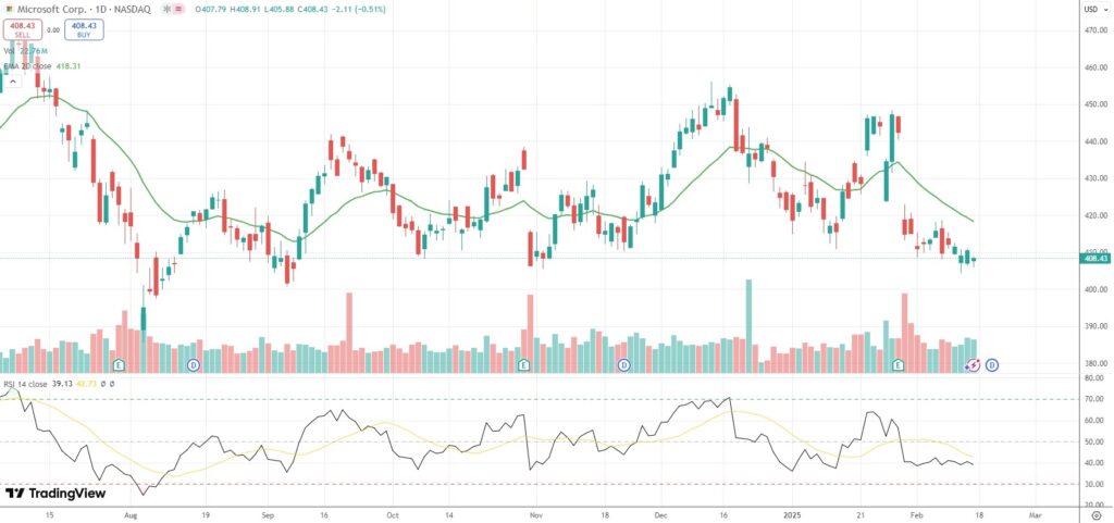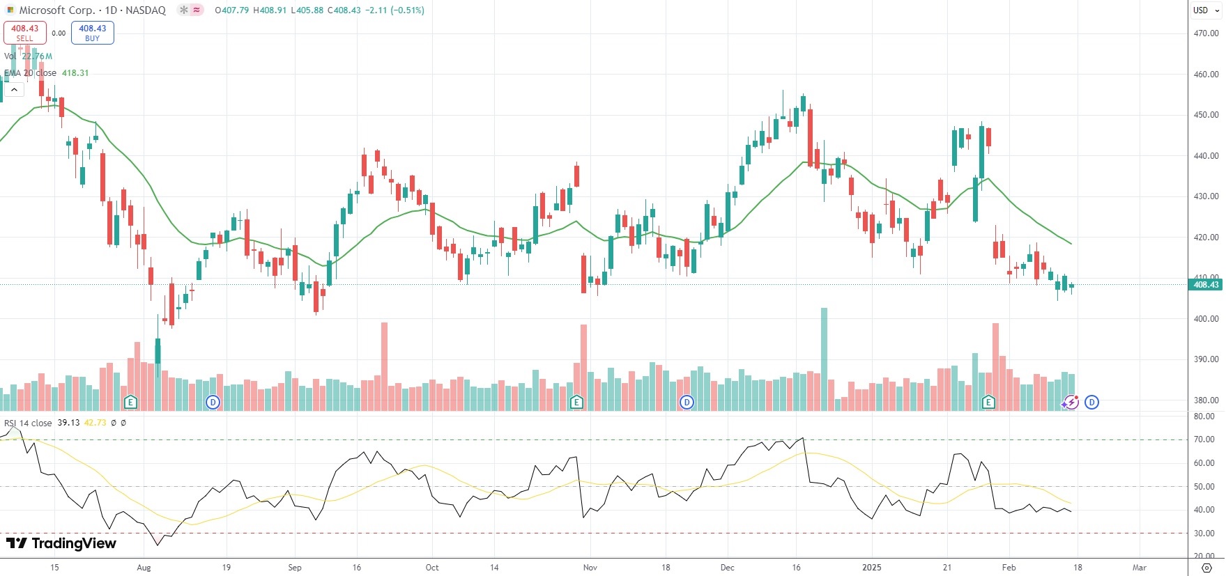 The shares of Microsoft Corporation (MSFT) closed 0.51% ($2.11) lower at $408.43 on Nasdaq on Friday.