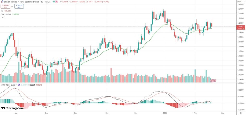 The GBP/NZD currency pair initially hit an intraday high of 2.2209 on Wednesday, then moved back below the 2.2100 mark, after a policy decision by the Reserve Bank of New Zealand and after data showed annual core inflation in the UK had picked up sharply in January.