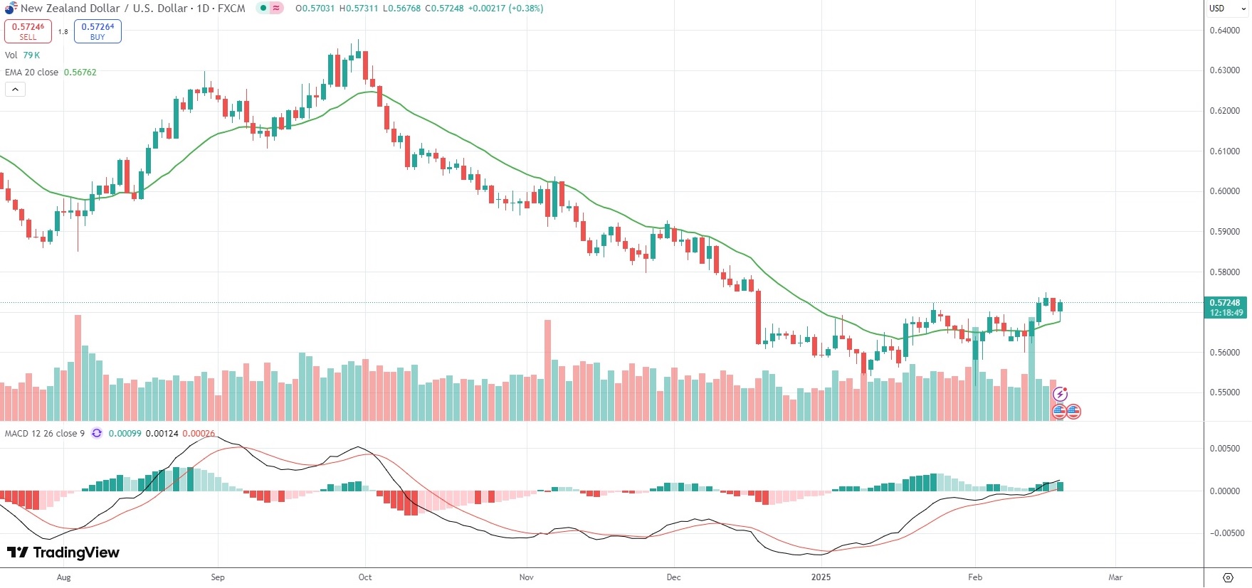 The NZD/USD currency pair initially hit an intraday low of 0.5677 on Wednesday, then rebounded back above the 0.5700 mark, after the Reserve Bank of New Zealand cut its official cash rate by 50 basis points to 3.75% at its February policy meeting, in line with market consensus.