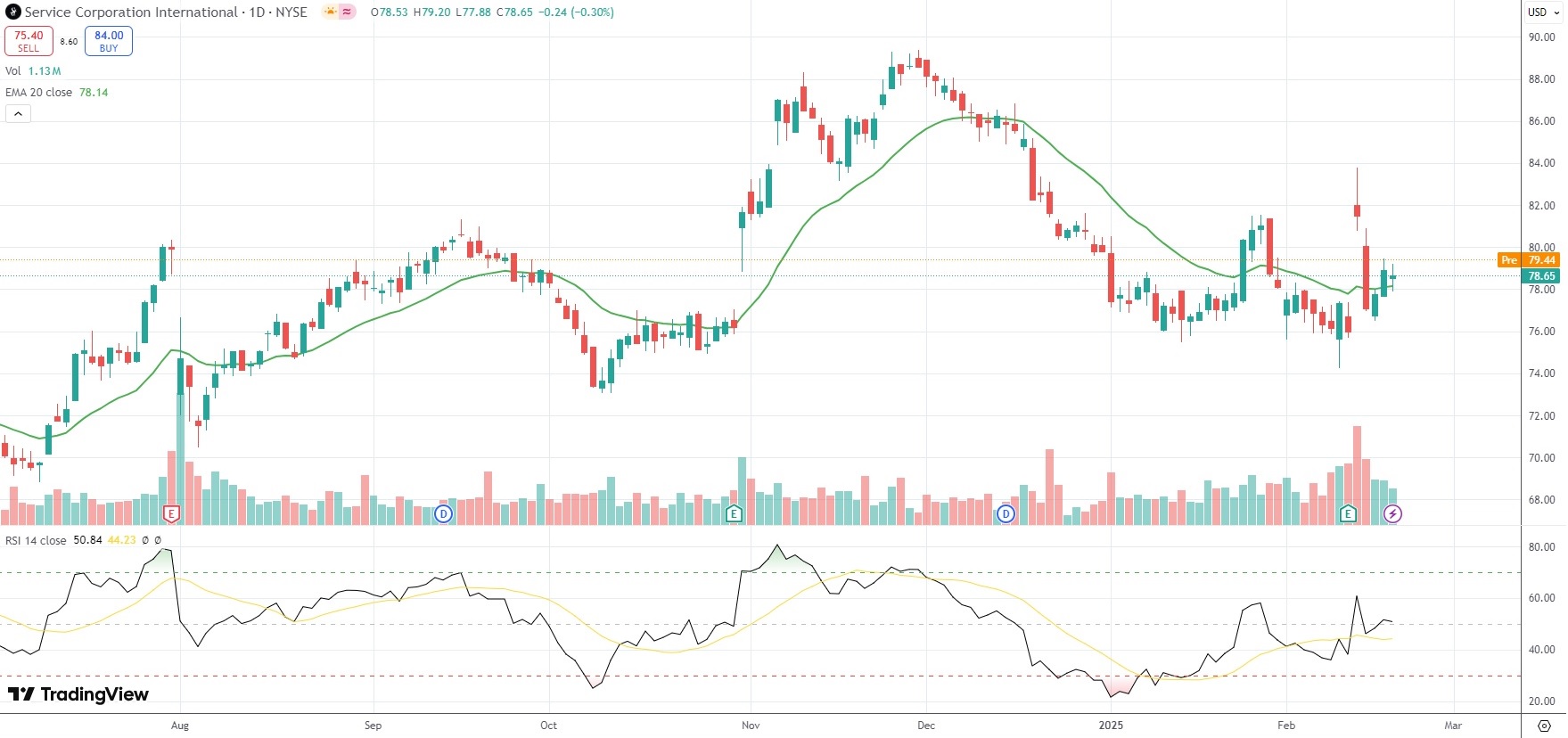 The shares of Service Corporation International (SCI) closed 0.30% ($0.24) lower at $78.65 in New York on Thursday.