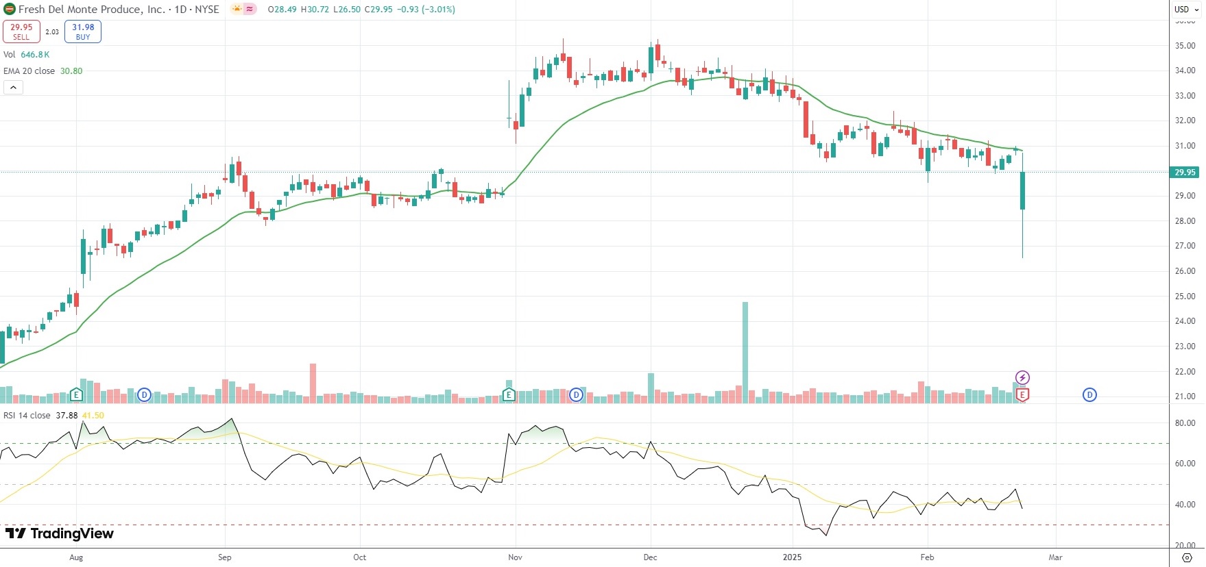 The shares of Fresh Del Monte Produce Inc (FDP) went up 26.51% in 2024, compared with a 13.32% gain for the benchmark index, NYSE Composite (NYA).