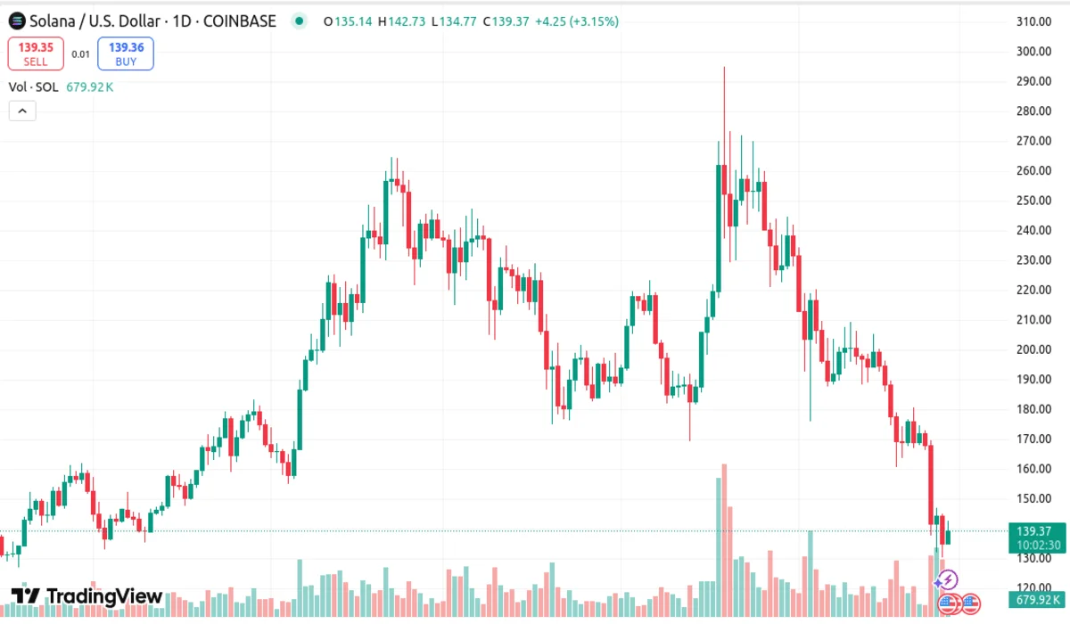A low RSI often signals that the selling pressure may be exhausted, and a potential price rebound could be on the horizon. At the time of writing, the price of Solana hovers around $139, still relatively low compared to previous highs and the $200+ it reached earlier this month. The current market sentiment is also at its lowest point in over a year, with many investors exhibiting extreme bearish sentiment.