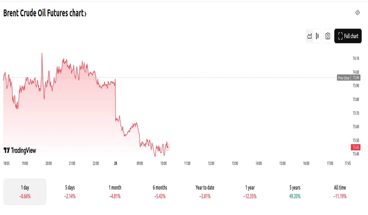 Oil prices rebounded sharply on Thursday, with both Brent and West Texas Intermediate (WTI) crude benchmarks climbing more than 2%. The rally followed U.S. President Donald Trump’s decision to revoke Chevron’s license to operate in Venezuela, raising concerns about potential supply disruptions. Brent crude futures rose 2.1% to settle at $74.04 per barrel, while WTI crude gained 2.5% settling at $70.35. This recovery came after both benchmarks hit two-month lows in the previous trading session.
