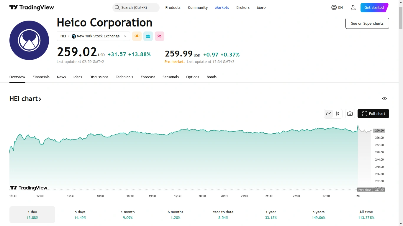 HEICO Corp. stock surpassed its 200-day moving average of $241.82, reaching $259.00, a 13.88% jump, following its Q1 earnings release. Investors received detailed information from HEICO Corporation regarding its recent performance.