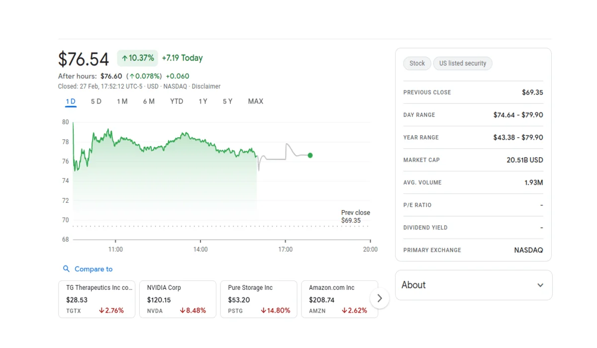 Nutanix saw a notable increase in its stock price, with shares rising by 10.37% to $76.54, following the release of its second-quarter fiscal 2025 financial results. The market responded favorably due to the company’s impressive performance, marked by significant year-over-year growth in annual recurring revenue (ARR) and strong free cash flow generation.