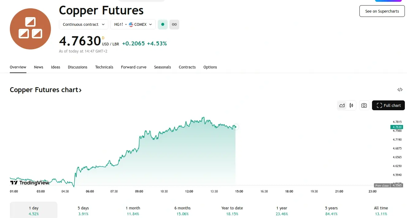 Copper Futures Rebounded Above $4.60 Per Pound Wednesday, Driven By Renewed Concerns Over Potential U.S. Tariffs