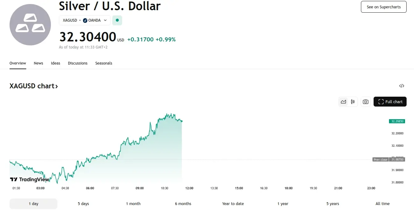 Silver Prices Continue Their Ascent Wednesday, Approaching $32.15, as Investors Sought Safe-Haven Assets Amidst Escalating Global Trade Tensions